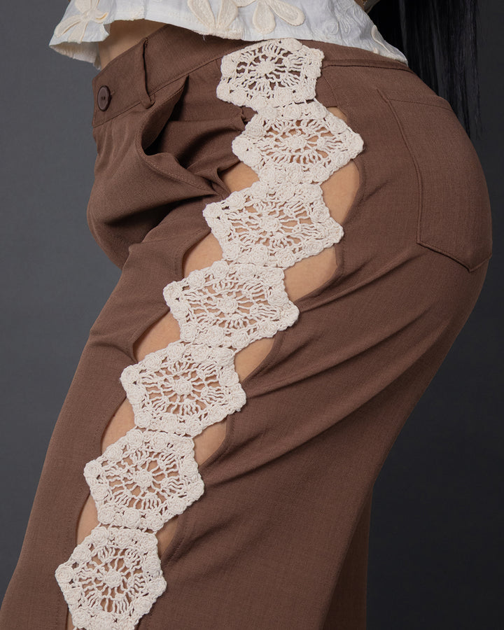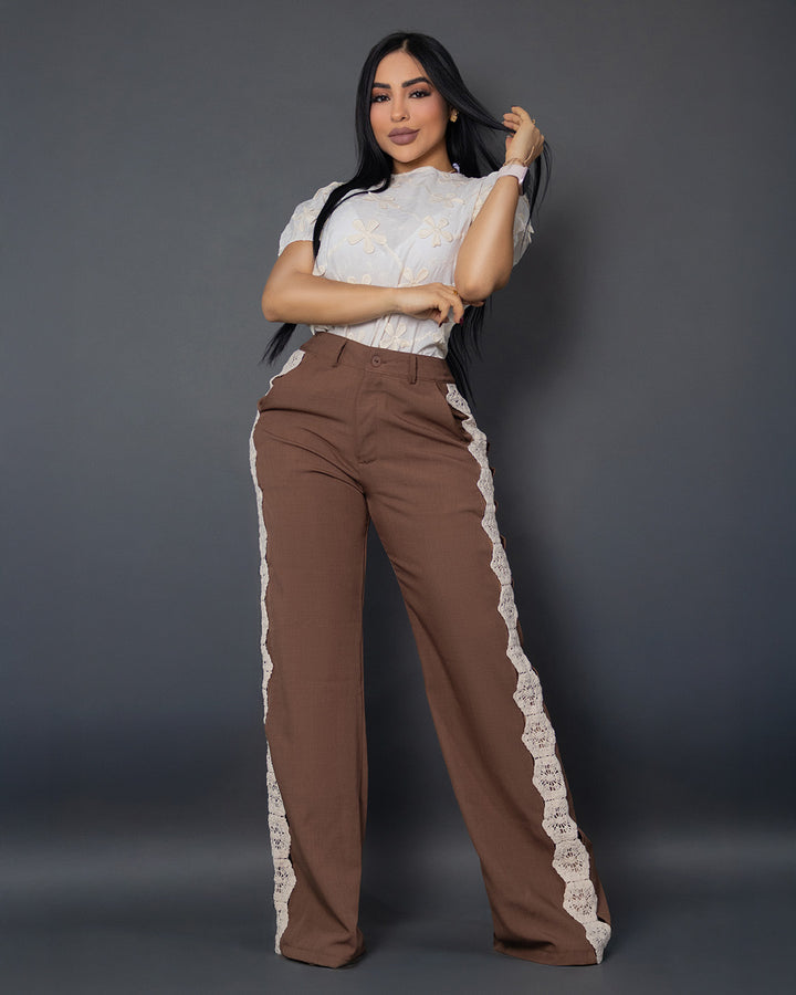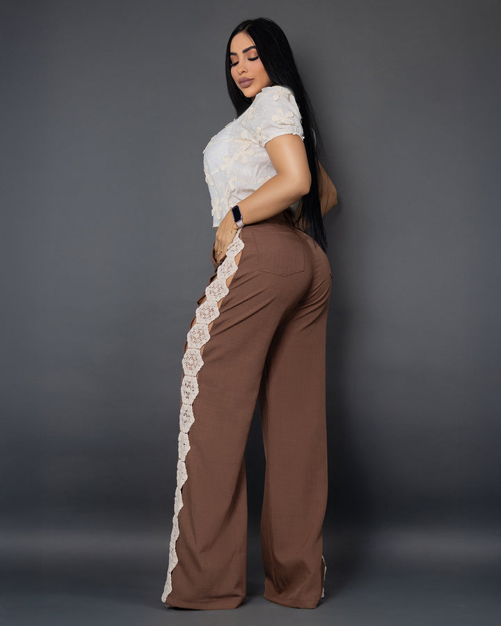 Jean bota ancha Cocoa Lace – tiro alto con encaje lateral