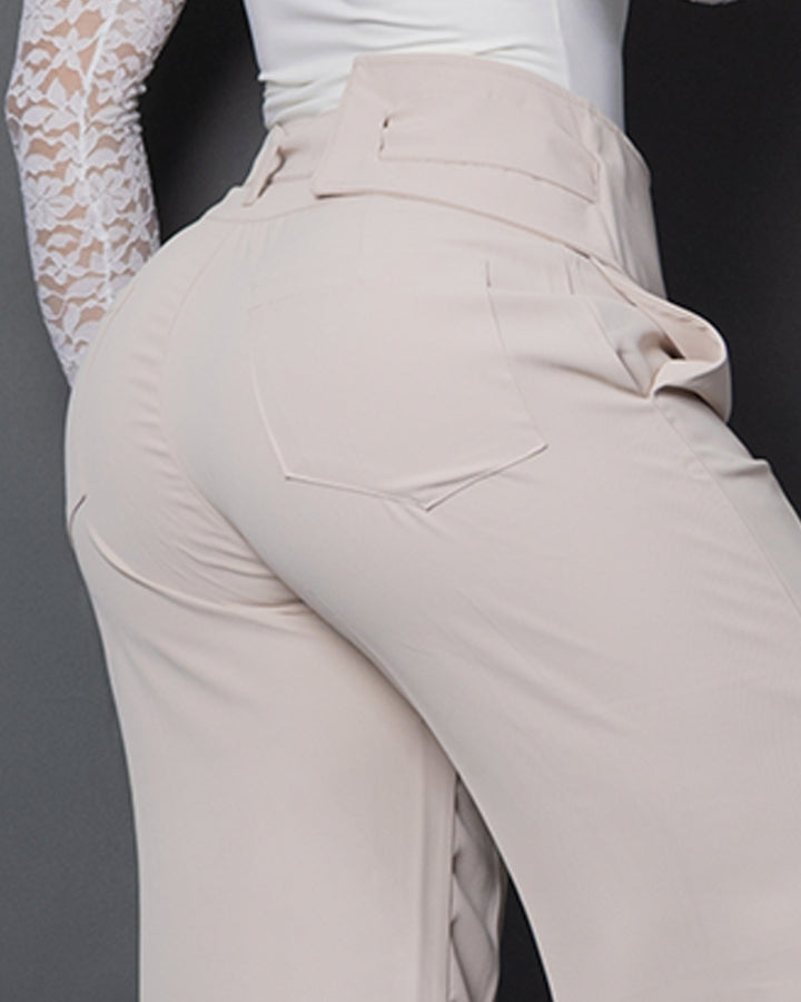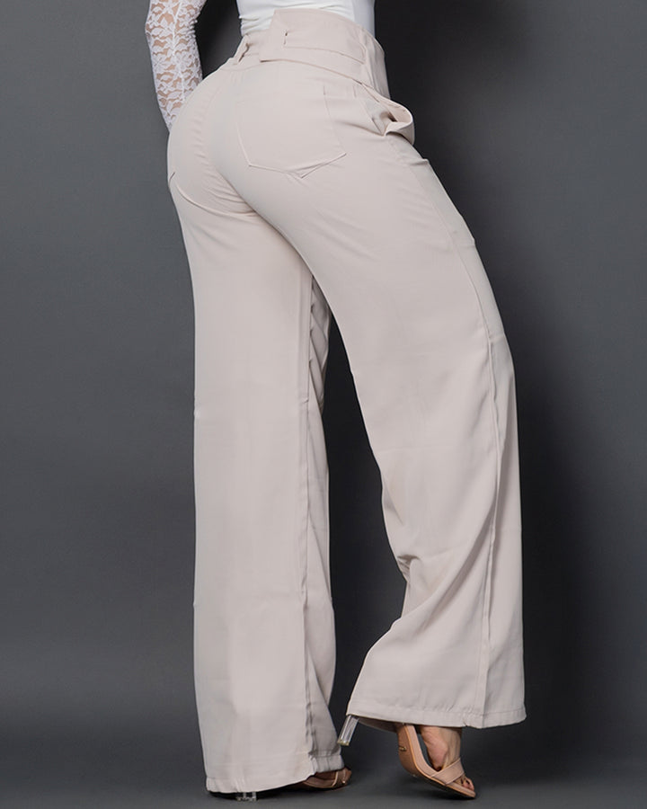 Jean bota ancha Ivory Belt – tiro alto con cinturón dorado