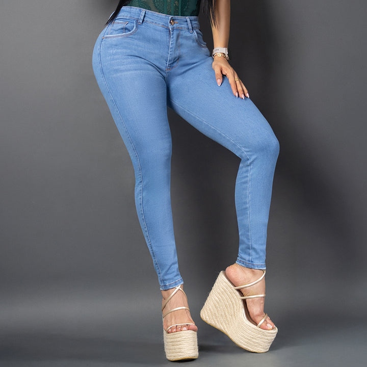 Jean tiro alto en denim licrado color azul claro, con efecto realce y moldeado que define tus curvas con total comodidad. Perfecto para crear looks modernos, femeninos y llenos de actitud. 💙