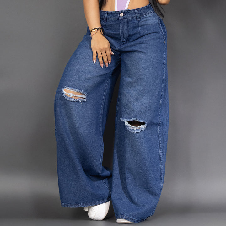 Su silueta palazzo de tiro alto alarga tu figura y resalta tu cintura con un efecto de porte natural. Confeccionado en denim premium con textura suave y molde adaptable, ofrece comodidad sin perder estructura.