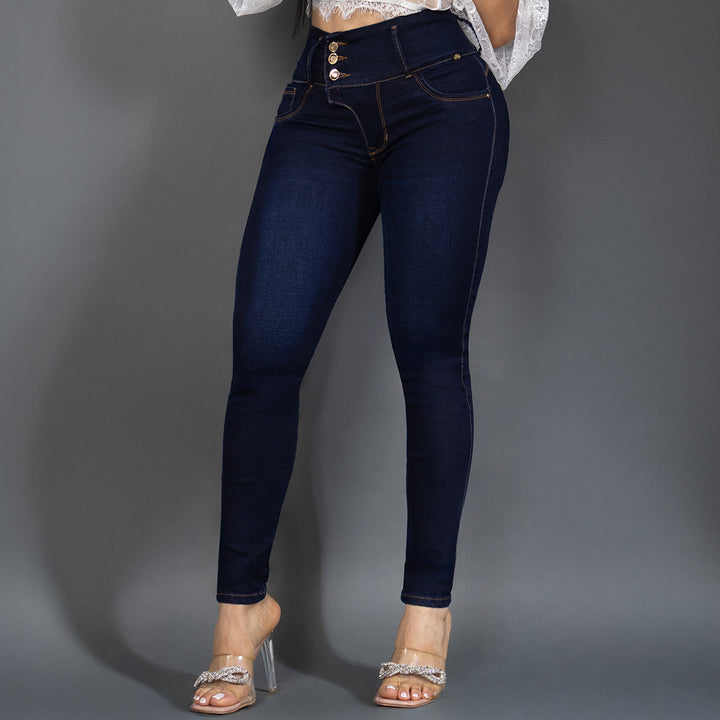 jeans 3 botones tono oscuro ref 7102