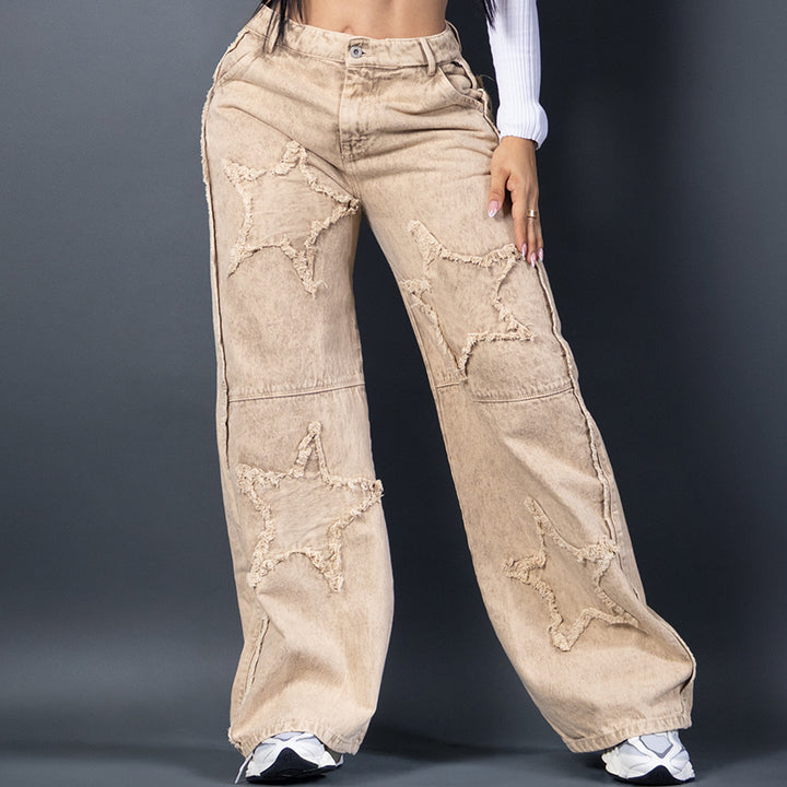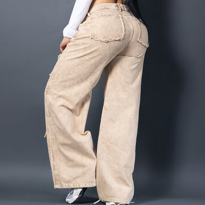 Jean silueta baggy , con fit relajado y cintura alta. Ideal para looks cómodos, modernos y con mucho estilo. Perfecto para combinar con tops o camisetas oversize.