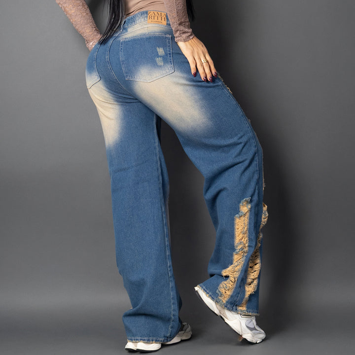 Jean silueta baggy en color azul con fit relajado y cintura alta. Ideal para looks cómodos, modernos y con mucho estilo. Perfecto para combinar con tops o camisetas oversize.