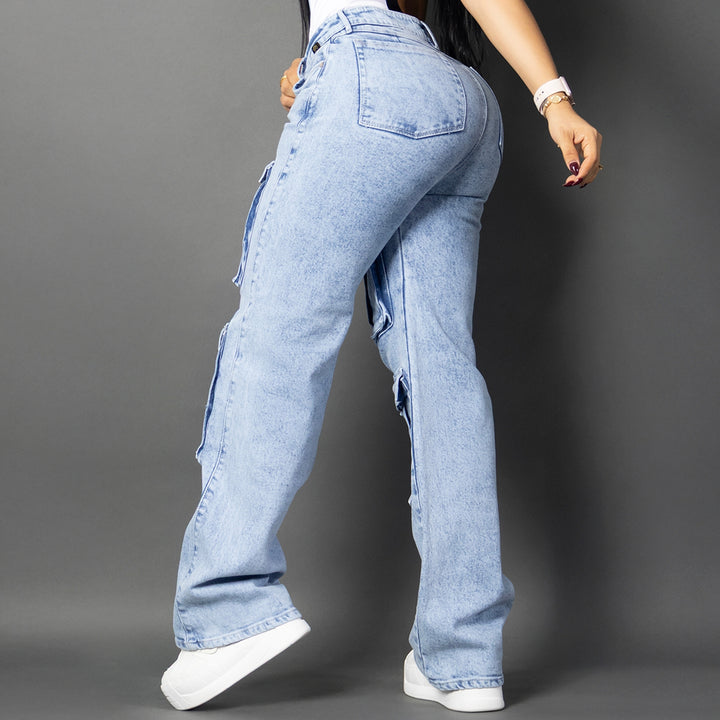 jeans cargo tono hielo 7107