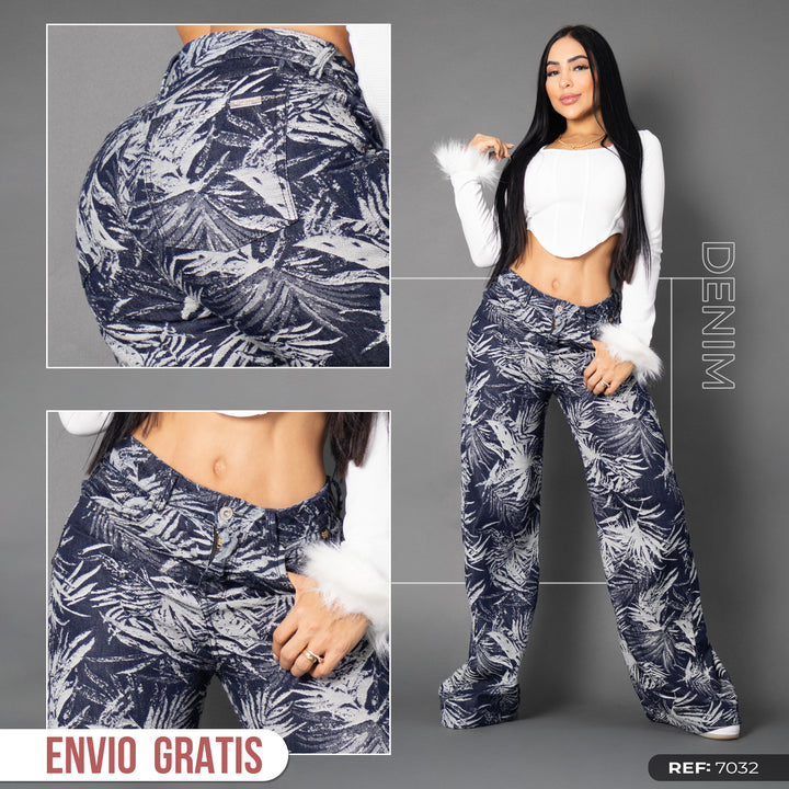 Jeans Wide Flare Flower Ref. 7032, un diseño único y femenino con bota ancha y detalles florales que marcan la diferencia. Su estilo retro y moderno a la vez, realza la figura y aporta un toque romántico y trendy a cualquier look. Perfecto para destacar con personalidad.